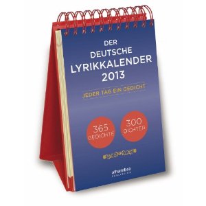 Shafiq Naz (Hg.), Der deutsche Lyrikkalender 2013. Jeder Tag ein Gedicht, 365 Gedichte von den Anfängen bis zur Gegenwart, 440 Seiten, Tischkalender mit Spiralbindung, Alhambra Publishing, B-Bertem 2012.