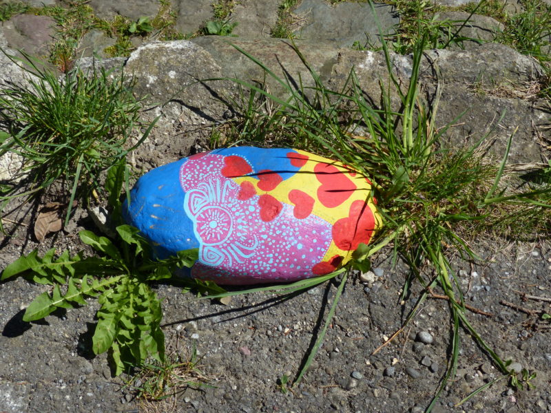 bunt und schön bemalten Steine habe ich kürzlich in einem Baum- und Blumenbeet am Rhein entdeckt und geknipst: