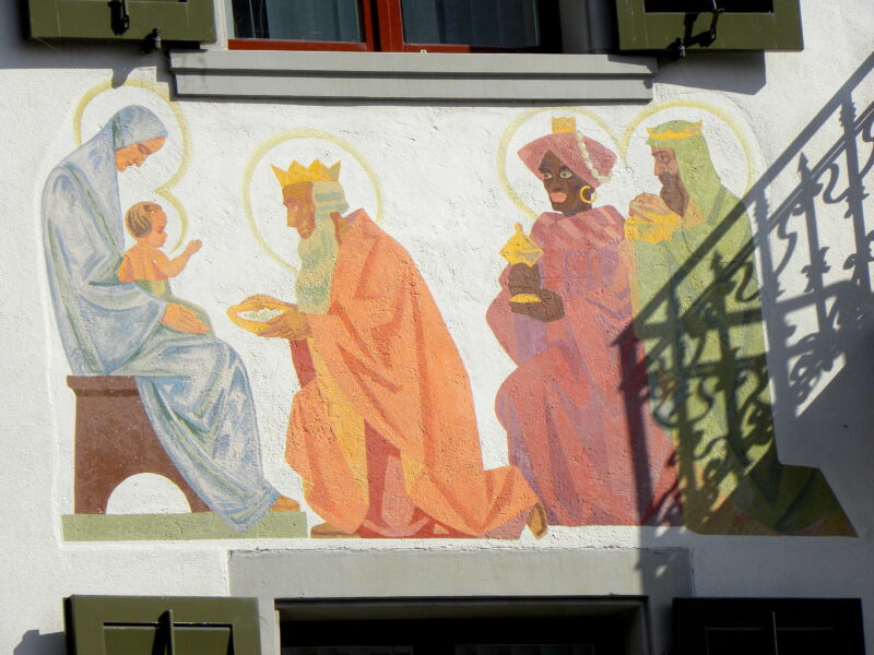 Darstellung an einer Hausfassade in Rapperswil/SG (der Künstler Augustin M. Bächtiger malte es 1934)