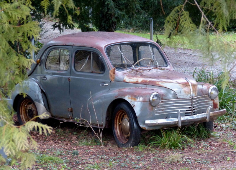 Langsam um die Ecke fuhr.