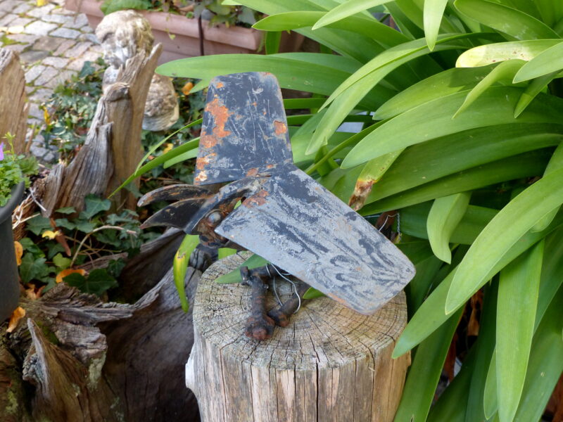 zumal er half beim Staudenschneiden,