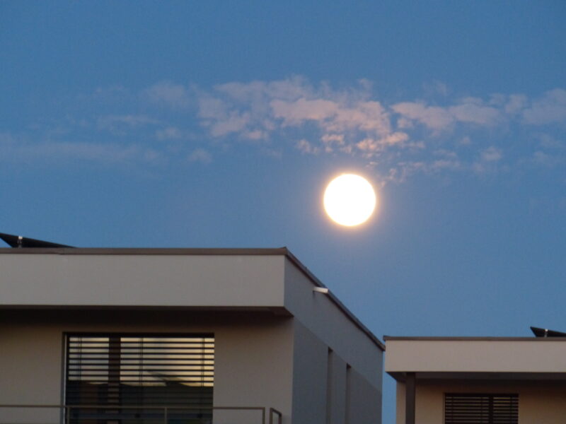 Und hier noch der grösste Vollmond dieses Jahres, wie wir ihn gestern gegen Abend zu sehen bekamen: