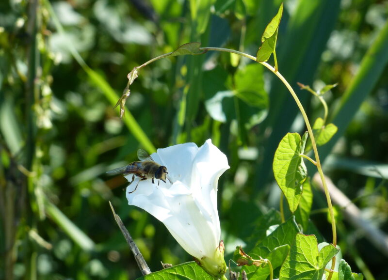 Die Zaunwinde mit der allgegenwärtigen Mistbiene (einer Schwebfliegenart).