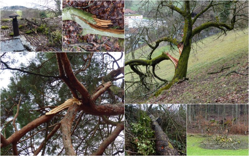 Wie auch die Bilder der von Sturm und Schneefall geknickten Bäume.