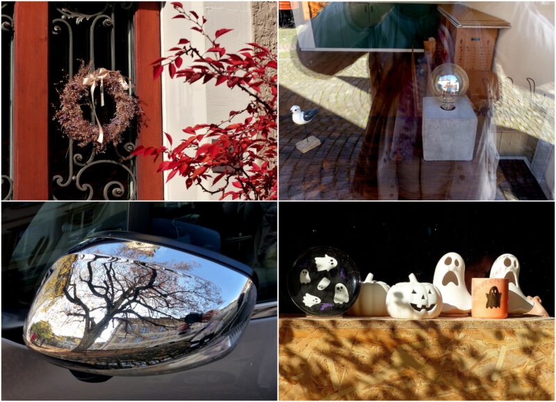 tolle Bilder begleiten Dein Oktober-Ende. Die Spiegelung des entblätterten Baumes auf dem Auto-Außenspiegel ist ein besonderer Hingucker.