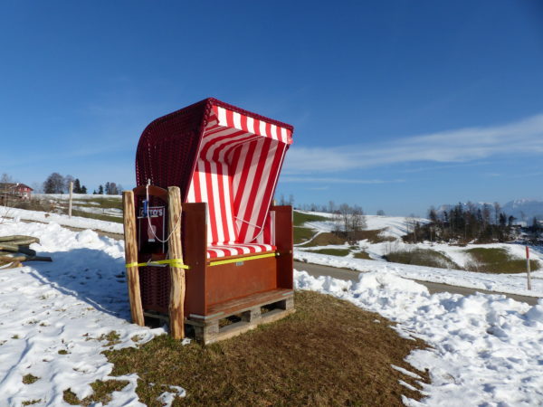 Wie entzückend, wenn es den Strandkorb in die Berge zieht. Ein Päuschen am Nebelmeer, das hat er sich aber auch wirklich mal verdient. Obwohl …viel Ruhe hat er dort wohl nicht.
